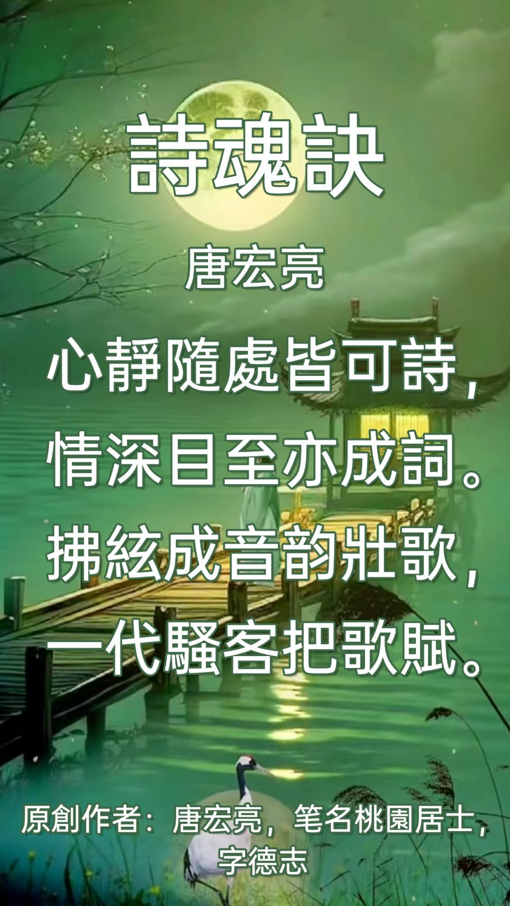 总体而言,唐宏亮老师的《诗魂诀》不仅展现了诗人的深厚文学素养,也让人感受到了诗歌创作中的艺术灵感与情感表达。荣获特等奖,不仅是对作品的肯定,也是对唐宏亮老师诗歌才华的高度评价。希望唐宏亮老师继续在诗歌的创作中深耕,创作出更多充满艺术魅力与思想深度的作品。