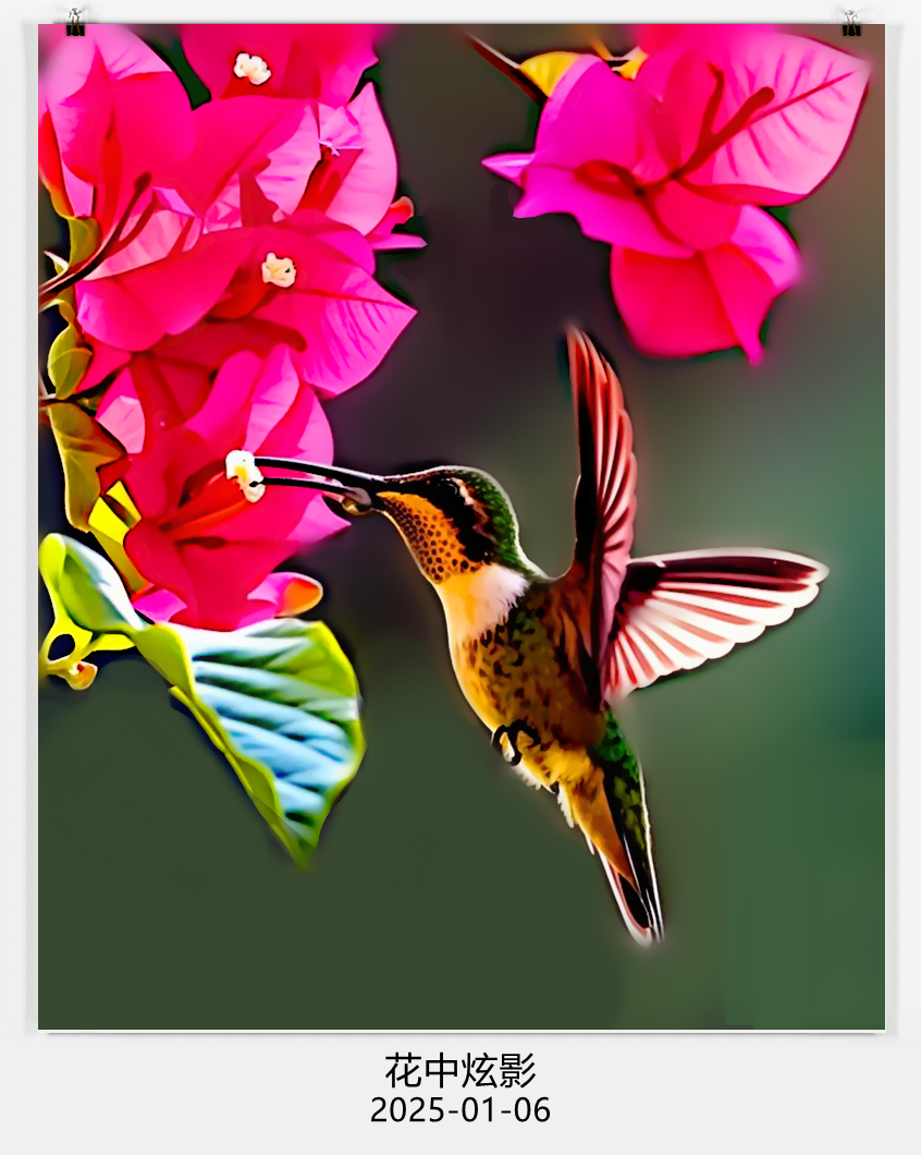 繁花盛开的时刻,蜂鸟如灵动的精灵,于三角梅间轻盈穿梭。羽翼闪动,似在编织一曲自然的舞蹈,每一次振翅都是与花蕊的温柔邂逅,定格这瞬间,便是生命与美好的交融。