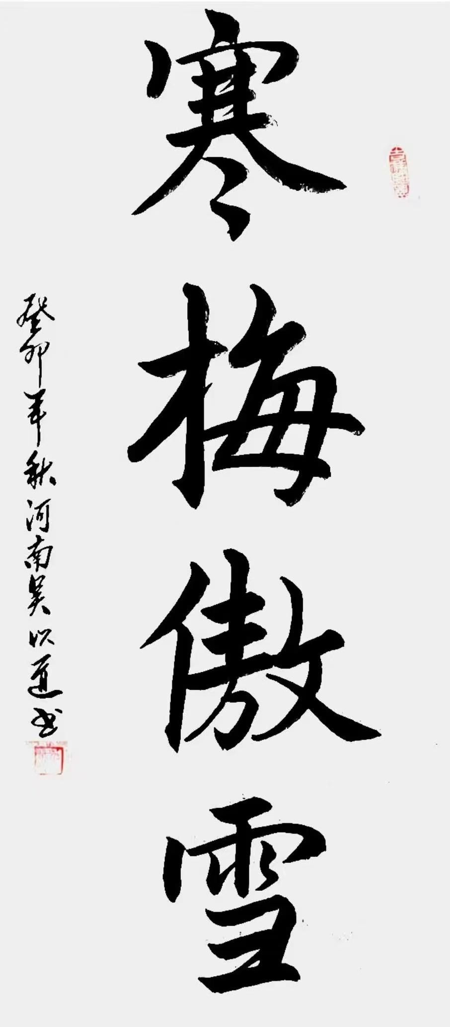 在书法研习之路上,吴以道深入钻研、临习古人经典,同时积极借鉴现代书法理念,仿古学今,从未有过丝毫懈怠。他笃定前行,致力于将自己打造成新时代具有独特风格的书法家。通过不懈努力,他取得了斐然成绩。近年来,他创作的书法作品不仅深受广大书法爱好者的喜爱,更赢得了评委老师们的高度赞誉。其作品具有鲜明特点:笔法自然流畅且刚劲有力,章法布局合理得当,字型结构严谨规整,墨法运用流畅自如。在用墨上,他能够巧妙把控,浓墨不显得厚重沉闷,整体呈现出一种静雅之美,展现出极高的艺术水准。