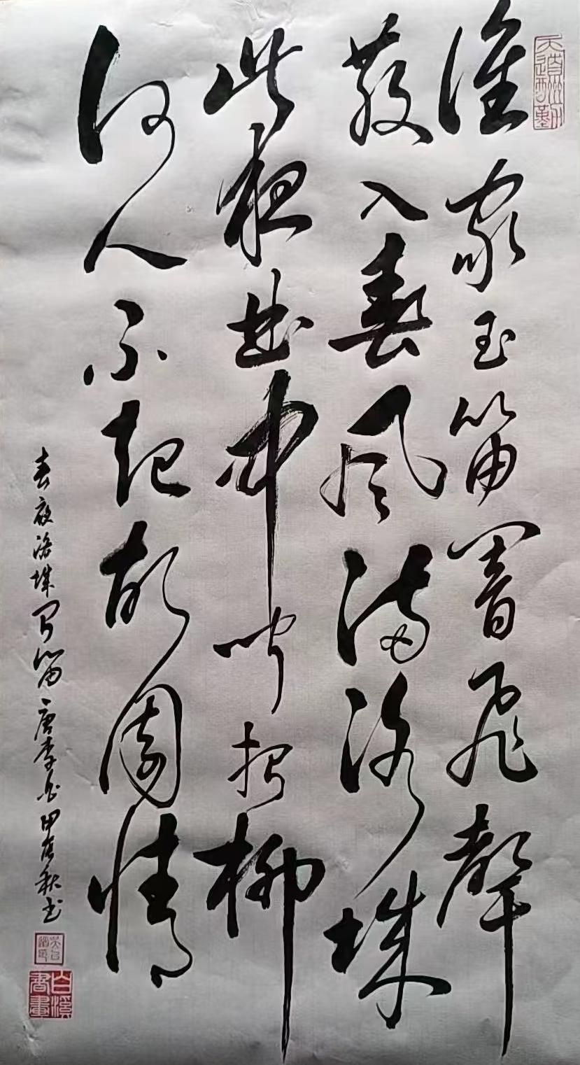 总的来说,吴以道老师的《黄鹤楼送孟浩然之广陵》是一幅气韵生动、笔力雄厚的书法作品。整幅作品流露出一种奔放的力量和悠然的情感,既展现了诗词中的深厚意境,又传达了书法艺术的动感之美。吴老师通过行草书的形式,不仅让诗句充满了生动的画面感,也赋予了作品一种超然的艺术魅力。再次恭喜吴以道老师的佳作获得一等奖,期待未来能欣赏到更多他的精彩作品!