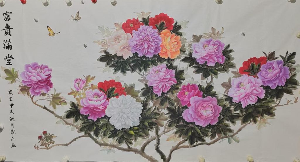 这幅《富贵满堂》国画作品是杨献庄老师的力作,荣获特等奖,实至名归。作品通过栩栩如生的牡丹花,传达出一种富贵、吉祥的象征,展现了作者深厚的绘画技艺和独特的艺术视角。
