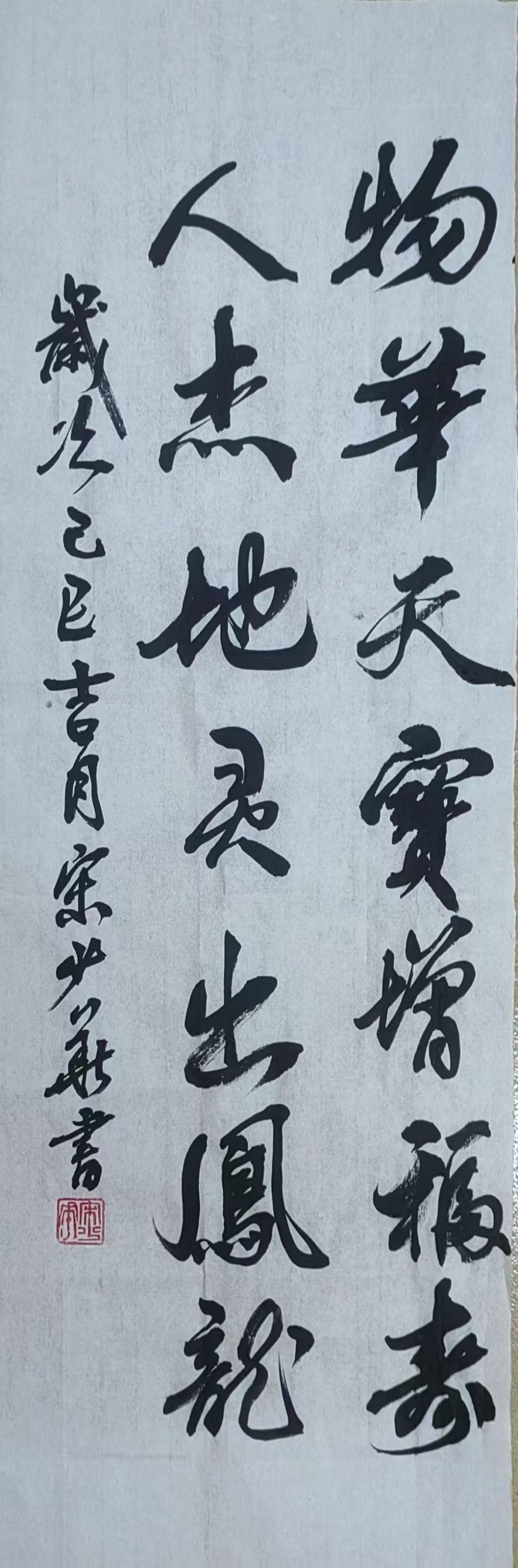 宋少华老师的这幅书法作品,以“物华天宝增福寿,人杰地灵出凤龙”为题,诗句中的宏大气势与书法作品的笔墨表现完美契合,展现了浓厚的文化底蕴与深刻的寓意。作品得到了特等奖的肯定,实至名归。