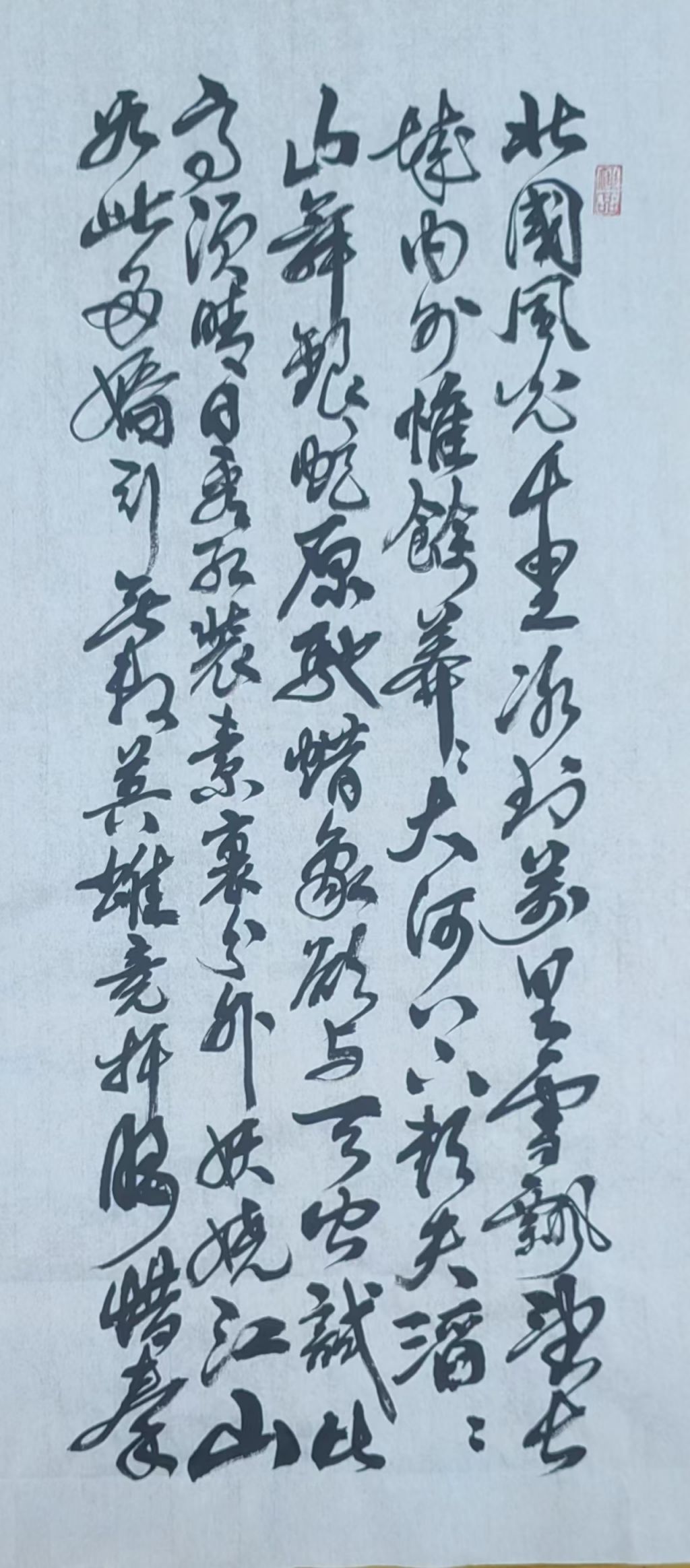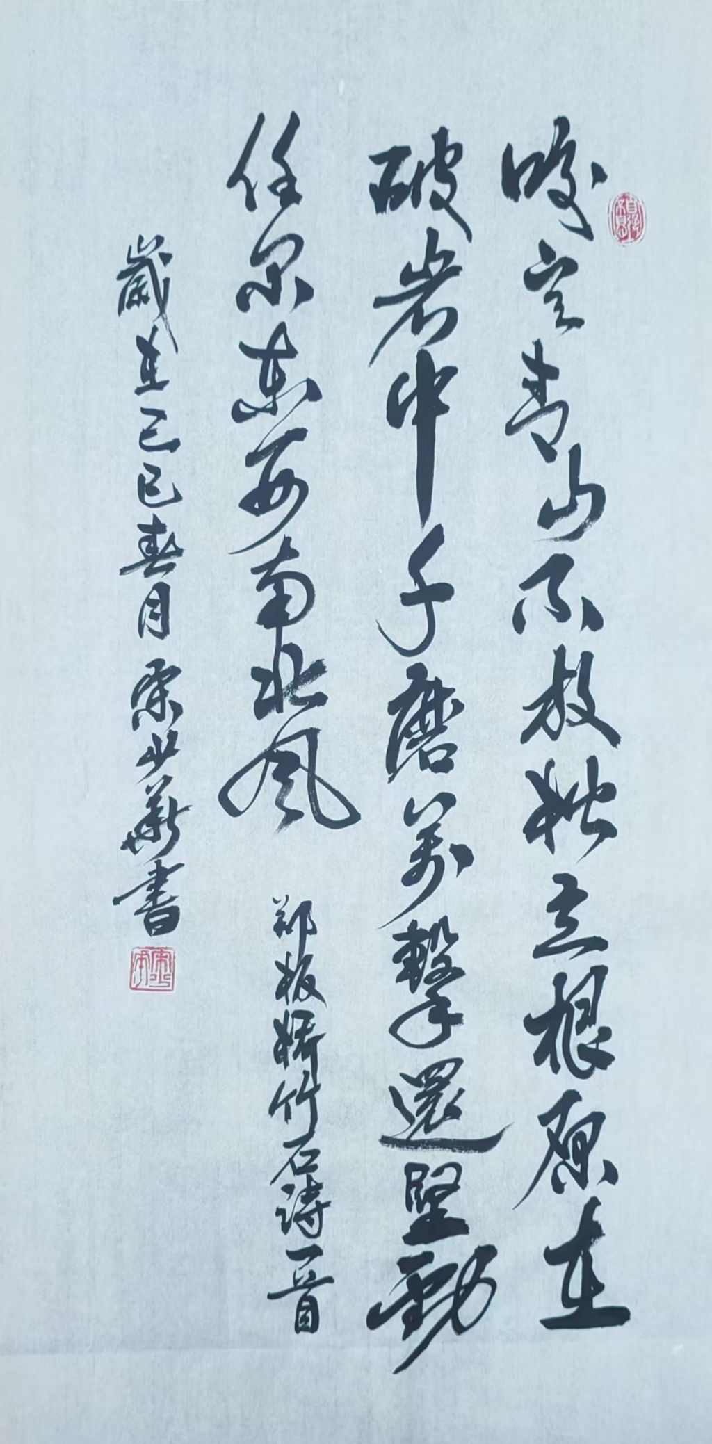 总的来说,宋少华老师的这幅作品以其深厚的笔墨功力和对诗意的精准表达,展现了书法艺术的独特魅力。字形饱满有力,笔画流畅自然,整个作品给人一种强烈的视觉冲击和深远的文化感悟。恭喜宋少华老师荣获特等奖,期待未来他能继续创造出更多精彩的书法作品,不断突破自我,推动书法艺术的传承与创新。